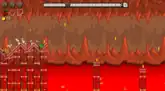 This alternate fifth level has, as the title screen suggests, lots of adjacent diagonal ramps, leading to potential confusion on where the player should jump from. There are also randomly generated falling boulders, like Crumble Cavern. It also has a tendency towards stretches of mostly empty space scattered with short sections of rail, requiring constant jumping to safely make it across. Red Hot Rollercoaster is the seventh level in Endless Mode.