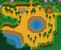 Rice Shoots planted in most farm tiles take 8 days to mature with watering each day, as with other crops. However, Rice Shoots planted within 3 tiles of a Farm Pond or natural water source (excluding Wells and Fish Ponds) in any direction are considered to be irrigated, as in a rice paddy. Paddies need not be continuous with each other or adjacent to a pond in order to count as irrigated. Irrigated Rice Shoots take only 6 days to mature and do not require watering.
