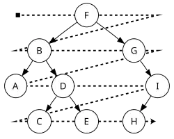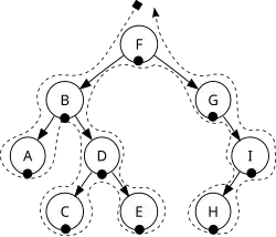 When doing this by hand, you can just draw a line to the left of the nodes and drawing a line around the nodes as shown in the image to the right. This method works for each traversal, it just depends where you draw the lines.
