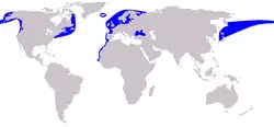 - b. Phocoena phocaena (Harbour Porpoise) is widespread in cooler coastal waters in the Northern Hemisphere, largely in areas with a mean temperature of about 15°C. In the Atlantic, Harbour Porpoises may be present in a concave band of water running from the coast of western Africa round to the eastern seaboard of the United States, including the coasts of Spain, France, the United Kingdom, Ireland, Norway, Iceland, Greenland and Newfoundland.
