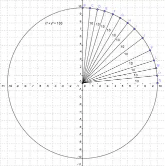 By definition, a circle is the set of all points for a given value of c. We call this r and come up with the following equation for a circle: