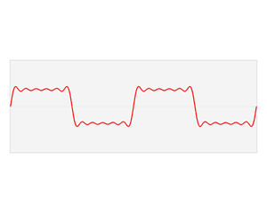 The Fourier transform relates the function's time domain, shown in red, to the function's frequency domain, shown in blue. The component frequencies, spread across the frequency spectrum, are represented as peaks in the frequency domain.