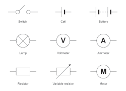 The circuit symbols that will be used in learning and the production of a circuit are the following picture on the left. This doesn't include the light dependent resistor (LDR), light independent resistor (LIR) or the thermistor.