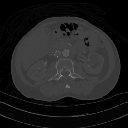 Notice that the 3D MIP derives its information from the most attenuating regions of the CT scan (given that the CT-number is directly dependent on the linear attenuation coefficient) and hence portrays bone, contrast media and metal with little information from surrounding, lower attenuating tissues. Notice also that continued viewing of the rotating MIP sequence can generate a disturbing effect where the direction of rotation appears to periodically reverse – which may be an aspect of perceptual oscillation. The perspective MIP, illustrated in the panel on the right in the above figure, can reduce this limitation by providing spatial cues which can be used to guide continued visual inspection.