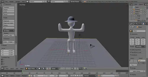 First of all, we'll need a model to put some bones on! For this tutorial, we're going to use a humanoid model. Open the model that you had created by the end of the Putting Hat on Person tutorial, or download a pre-made model from here.
