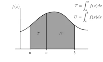 Again suppose that is positive. Then this property should be interpreted as saying that the area under the graph of between and is the area between and plus the area between and (see Figure 8).