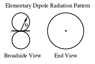 The dipole radiation pattern is shaped like a slightly flattened donut.
