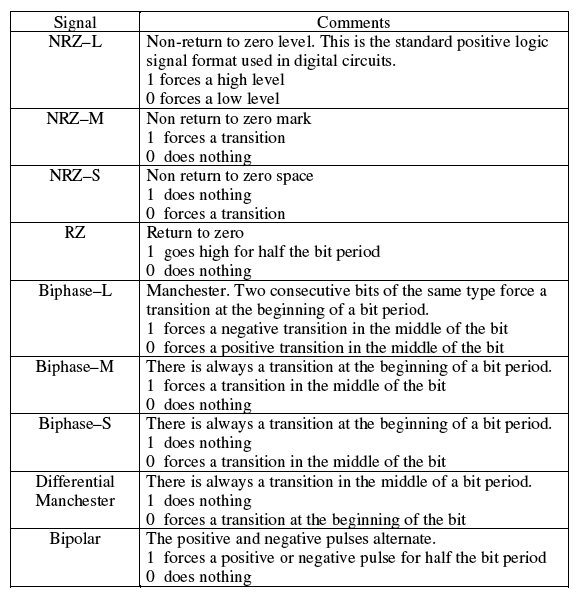 | Differential Manchester | Moderate bandwidth | Good clock recovery | No DC Component |