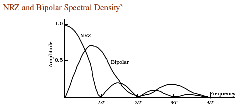 | Bipolar NRZ | Lower bandwidth | No timing information | No DC component |