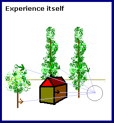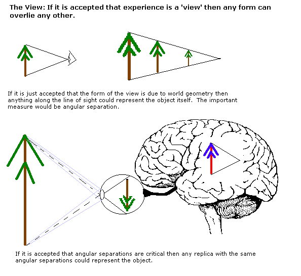 The naive realist idea of perception involves a point eye looking at a geometrical form. But the physics is different; there are two eyes with sometimes very different images in each. Light is refracted over the entire area of the cornea and directed over the entire area of the retina - there is no 'point eye'.
