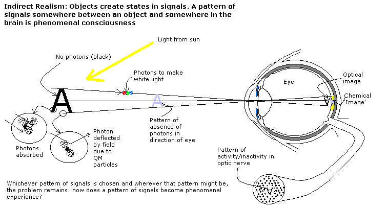The cloud of photons that compose light must get in the way of the view but naive realism neglects this, regarding the photons as somehow transparent yet gathering as an impossible group of millions of photons in a viewing point.