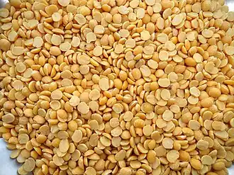 Toor dal, also tuvar dal, arhar dal, tuvara parrappu, are the split and often skinless pigeon peas used for cooking dals across South Asia. It is the most widely used dal in India.
