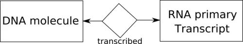 - One B can be related at most one A e.g. one RNA primary transcript can be transcribed from at most one DNA molecule