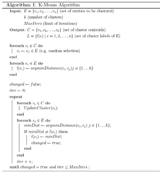 The K-Means is a greedy, computationally efficient technique, being the most popular representative-based clustering algorithm. The pseudocode of the K-Means algorithm is shown below.
