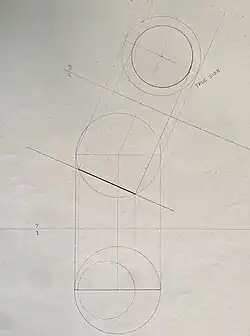 This will give us the true size of the section of the sphere. The auxiliary view is constructed by simply transferring distances. (Fig1.3)