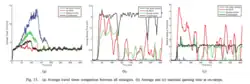 They show the density versus the flow of vehicles at Huntington on the mainline. As we can observe without any control the density of vehicles is free to increase on the mainline and thus yields major slowdowns and create jams. With ALINEA, the diagram successfully stays in the free flow section and no jam is experienced, this comes at the cost of reaching up to 8 minutes of queuing time (as seen on Figure 13(c)). Upon the introduction of a 2-minutes queue constraint, slowdowns are experienced but jams are avoided as we stay mainly below 80 vehicles per kilometer (compared to 110 vehicles per kilometers without any control strategy). Figure 13(c) clearly shows that the maximal queuing time does not exceed 2 minutes. Finally the coordinated approach leads to similar results than the ALINEA control whilst staying within the queue constraint. It is clear that a trade-off between queuing time and travel time exists, but the introduction of our coordinated strategy not only improves the travel time by a factor two (see Figure 13(a)), but also solve the equity problem where all vehicles entering the highway experience the same delay.