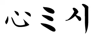 Let's take a look at three examples, the Chinese character for "heart", the Japanese katakana mi, and the Korean syllable for si:
