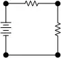 The circuit in Figure 1 (a) is very simple if we are given R and V, the voltage of the source, then we use Ohm's Law to solve for the current. In Figure 1 (b) if we are given R1, R2 and V then we combine the resistor into an equivalent resistors noting that are in series. Then we solve for the current as before using Ohm's Law. In Figure 1 (c) if the resistors are labeled clockwise from the top resistor R1, R2 and R3 and the voltage source has the value: V. The analysis proceeds as follows.
