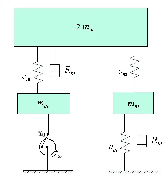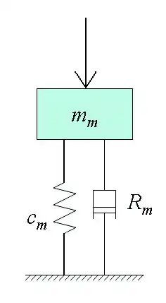 In order to incorporate the mechanical resistance (or damping) into the forced oscillator model, a dashpot is placed next to the spring. It is connected to the mass () on one end and attached to the ground on the other end. A new equation describing the forces must be developed: