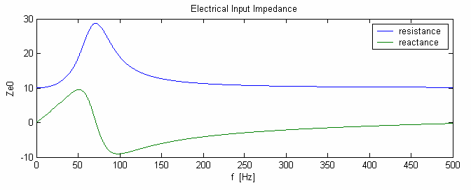 Using the mechanical impedance in the following equation, notice that the imaginary part will equal zero at resonance.