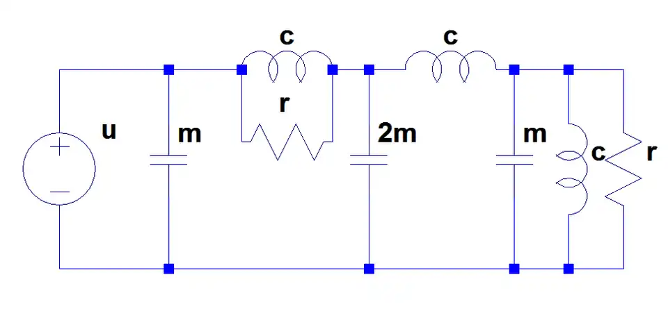 In practice, the stiffness of the spring , also called the spring constant, is usually expressed as , or the mechanical compliance of the spring. Therefore, the spring is very stiff if is large is small. Similarly, the spring is very loose or “bouncy” if is small is large. Noting that force and velocity are analogous to voltage and current, respectively, in electrical systems, it turns out that the characteristics of a spring are analogous to the characteristics of a capacitor in relation to, and, so we can model the “reactiveness” of a spring similar to the reactance of a capacitor if we let as shown in Fig. 2 below.