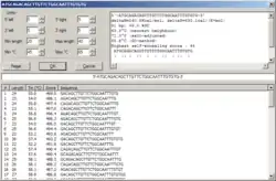 The list in the lower half of the dialog contains an automatically generated list of variants of the current primer, sorted by an arbitrary score. The "region" of variants can be influenced by multiple settings in the upper left quarter of the dialog. Available settings include: