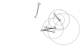We use the notation for the circle whose centre is the point A and its radius length equals that of the segment .