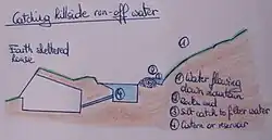 Rainwater may also be used for groundwater recharge, where the runoff on the ground is collected and allowed to be absorbed, adding to the groundwater. In US, rooftop rainwater is collected and stored in sump.[16] In India this includes Bawdis and johads, or ponds which collect the run-off from small streams in wide area.[17][18]