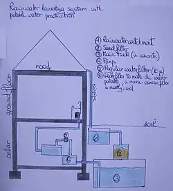 At the moment, 2 types of systems are generally used. These include DIY and commercial systems. Both of these systems are known under the term water harvesters and require only a limited amount of knowledge to set up (if basic systems are used). In both cases, the system consists of a storage tank to store the water and piping (to guide the water in). Additionally, extra pressuring equipment as pressure vessels, inline pump controllers or pressure sensitive pumps may also be required. [4] Finally, water purifying equipment such as water-purifying plants, ultraviolet light or distillation equipment are sometimes added to purify the collected water, depending on local conditions. [5]