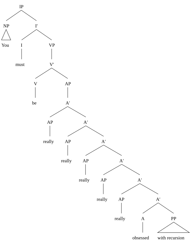 - Unlike complements, adjuncts are recursive, and we can append lots of these guys.