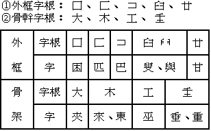 Note that a few elements, like 疒 at the H key and 山 at the D key, might have to be memorized. In figure 1, such difficult elements are surrounded by square brackets, showing that they are 'shoe horned' onto that key and doesn't follow the normal logic of Array. Such exceptions will be dealt with in more depth later.