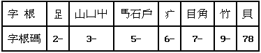 (the number 8 column have 2 primitives associated with it: 八 and \ )