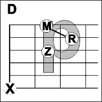 Pay particular attention to the position of your ring and middle fingers when playing D. |