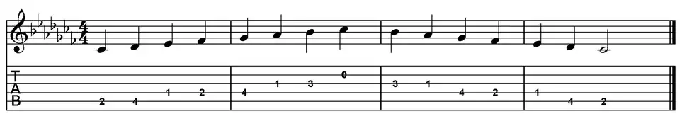 Anti-clockwise the root note of each scale forms the interval of a fourth with the root note of the following scale.
