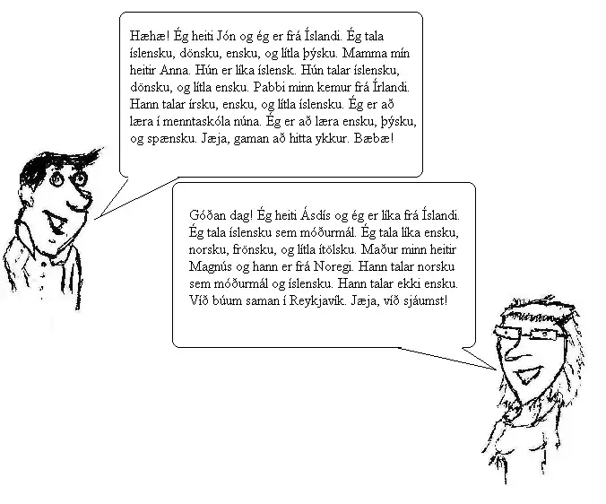 Read the following self introductions from two Icelanders who are telling about themselves, what languages they speak, where their family comes from and what their names are. There will of course be some new words in these introductions that you will not be familiar with. Try to use your prior English knowledge to figure out some of the meanings. Write down words that you definitely cannot figure out or understand, and read the vocabulary box below. Once you have read over the vocabulary, try to read again the introductions for a better understanding and comprehension.