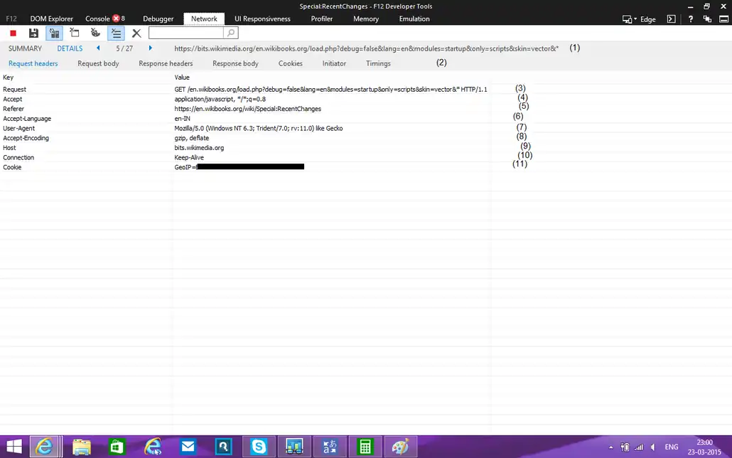 - The user agent of the browser selected. Here, it is the default user agent of IE11.