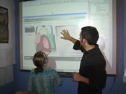A Knowledge Building teacher encourages students to look at the notes in Knowledge Forum together: