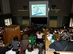 Crowdsourcing is being used directly in classrooms to engage students, increase student participation, get student feedback, create course content, and even determine grades. A popular example is the clicker, an audience response tool designed to get quick feedback from students and encourage classroom learning through “peer instruction”.[6] One such product on the market is promoted to have been "adopted by more than 1000 higher educational institutions in North America and used by over 2 million students".[7] Microblogging services like Twitter are also being used in classrooms to increase student participation. Professor Rankin at the University of Texas at Dallas taught her history class through classroom discussion on Twitter once a week,[8] and a professor at the Pennsylvania State University encouraged students to pass notes in class using Twitter.[9] Colleges are also investing in commercial learning management systems that facilitate crowdsourcing in classrooms through online collaboration tools. As a supplement to these systems, the Social Media Classroom provides additional social media functionality for learning in the classroom.[10] Teachers are also crowdsourcing the teaching and grading process to students. Most notably, Professor Cathy Davison of Duke University enabled students in her “This is Your Brain on the Internet” class to take turns to design their own curriculum and grade one another’s assignments.[11] Another example is Coursera, an online education portal offering online courses. Coursera trains its students to grade assessments and combines multiple crowdsourced assessments to obtain a "highly accurate score".[12]