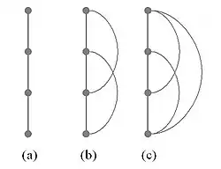 so we can go on by expanding this disjunction for further fixed distances (only). In order to express transitive closure for an arbitrary distance (what is vital for most situations) recursion can be introduced employing: