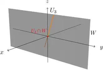 The subspace is the line through the origin and the point , while represents the y-z-plane. Together, and span the entire , i.e. .