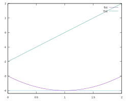- is differentiable at with . We now assume that had two zeros on and . Let without loss of generality be . There is also . Since is continuous on and differentiable on , Rolle's theorem can be applied. Hence, there is a with . But now has no zeros because of . So on , the polynomial cannot have more than one zero.