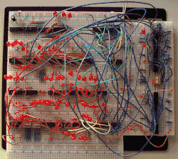 - "Learning to Build a Processor" shows some nice photos of early stages in a TTL CPU built on solderless breadboards.