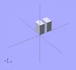 We have already seen how to create a simple cuboid. Our next task is to attempt to use the translate positioning command to place an identical cuboid next to the existing cuboid. Type the data as shown below. There are a total of 4 lines of code. Press F5 or F6 function key when done to see the preview.