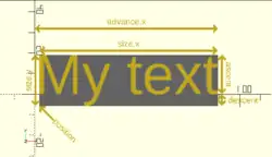Note: as with any array, you can use an object-like ".x" or ".y" to refer to the two entries in [x,y] pairs. Thus you can refer to either obj.size[0] or obj.size.x to get the X dimension of the text.