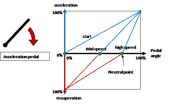 Accelerator / decelerator pedal for smooth recuperation