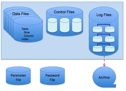 The 3 structures mentioned above, redo / undo log files, control files and data files, plus temporary files created during database operations collectively define the DATABASE.