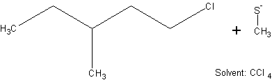 3) SN2. Primary carbon, good nucleophile, nonpolar solvent.