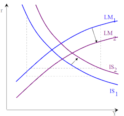 If one ever goes below the LM curve, there is a particularly low interest rate considering the amount of money in circulation in the economy (reflected by Y), and the demand for money is greater than there is money available (similar concept to that with the IS curve). This forces the point upward, and we return to the LM curve. The money supply is determined by the Central Bank, and therefore does not depend on Y; however, the demand for money depends on the size of the economy Y. There is another solution: that low interest rate can be reached if the economy shrinks and thereby demands less money.