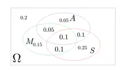- (P3) for every infinite sequence of pairwise disjoint events (each of which is an element of ), . (countable additivity)