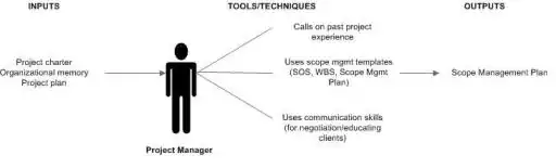 Please note the example in Figure 4. This figure summarizes the scope planning process, using specific inputs, tools, and techniques, to create the scope planning document as the corresponding output.